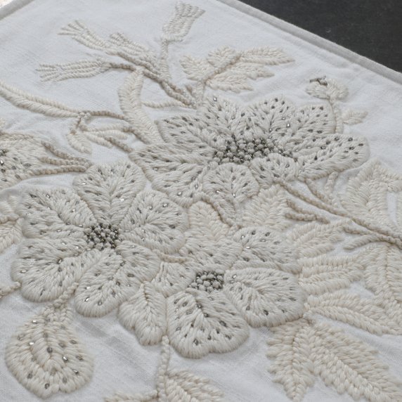 Introducing Textile Wall Art The Artisan uses different stitch types to create an embroidery that has great dimension and texture. The bugle beads sewn by hand add that little bit of bling.