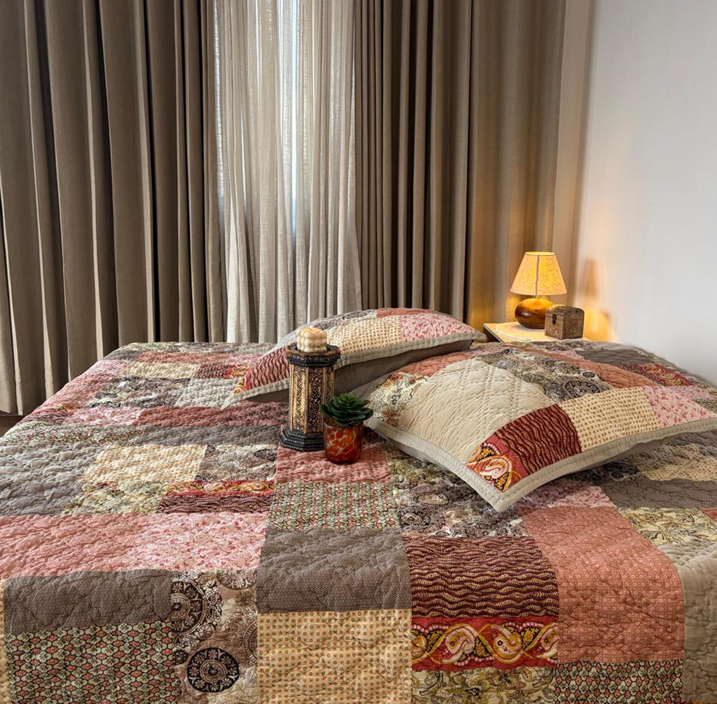 Gul Sakina Cotton Patchwork Bedspread ( set of 2 big square cushions)