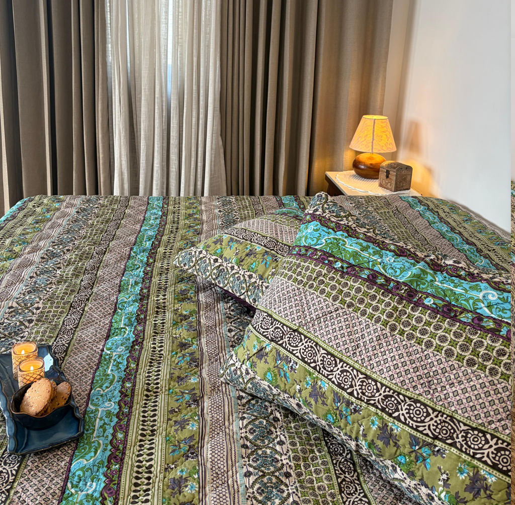 Mayura Neelbagh Patchwork Cotton Bedspread (2 rectangular cushions)
