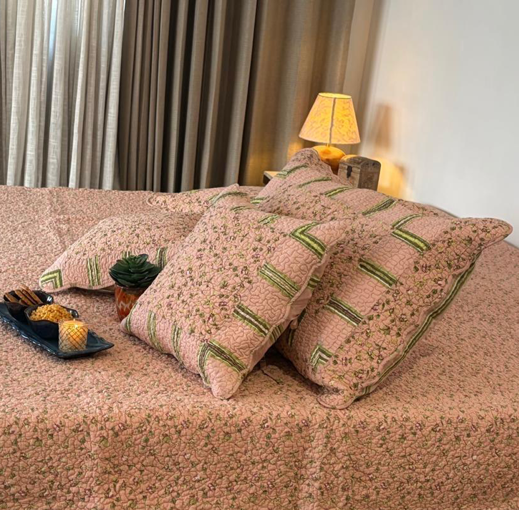 Vasundhra Cotton Bedspread Set (4 Cushions)