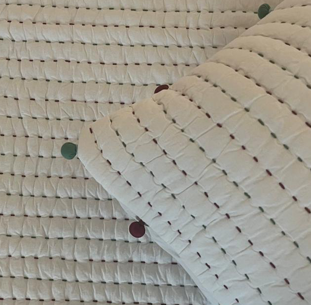 Chand Vilaas Kaantha Work Cotton Non Quilted Cum Dohar ( set of 2 cushions)